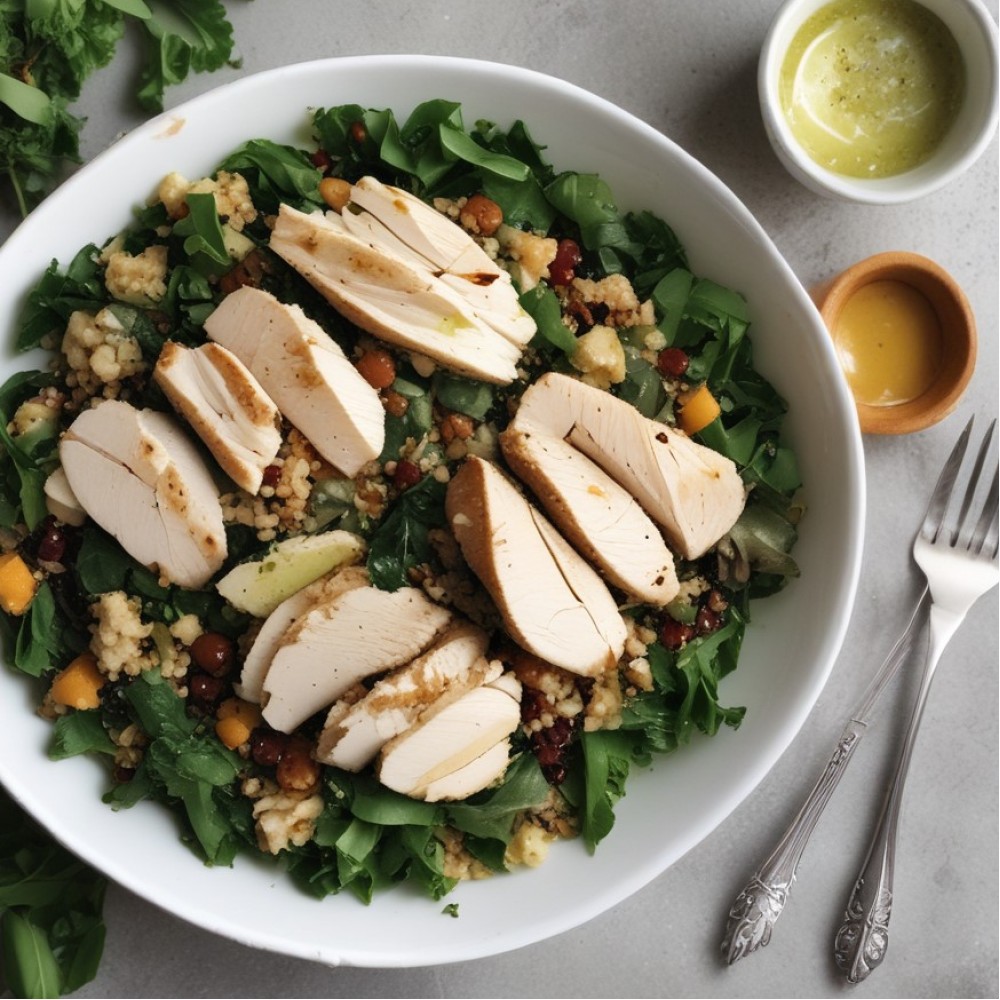 Grilled Chicken over Quinoa & Roasted Chickpea Salad with Red Wine Citrus Vinaigrette